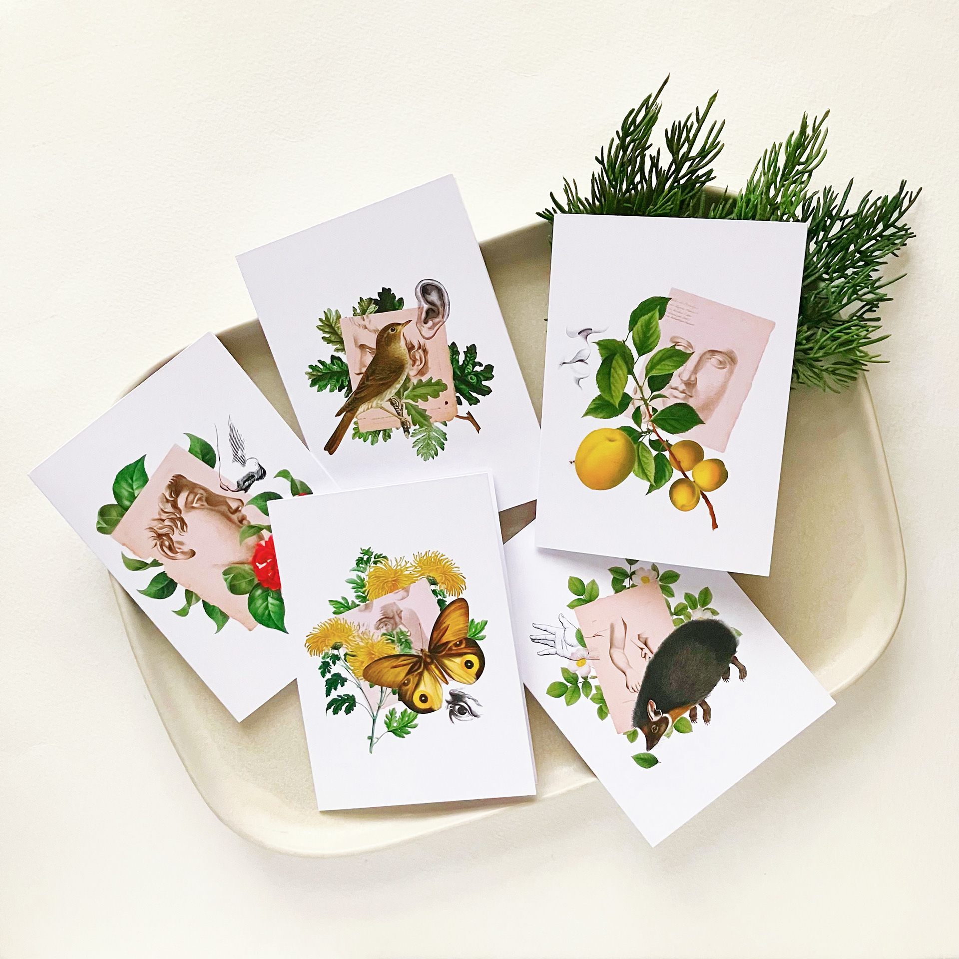 Just wanted to share that my Five Senses collage series will now be available as note cards, exclusively at The Papery. Shop in person and support a great local business!
